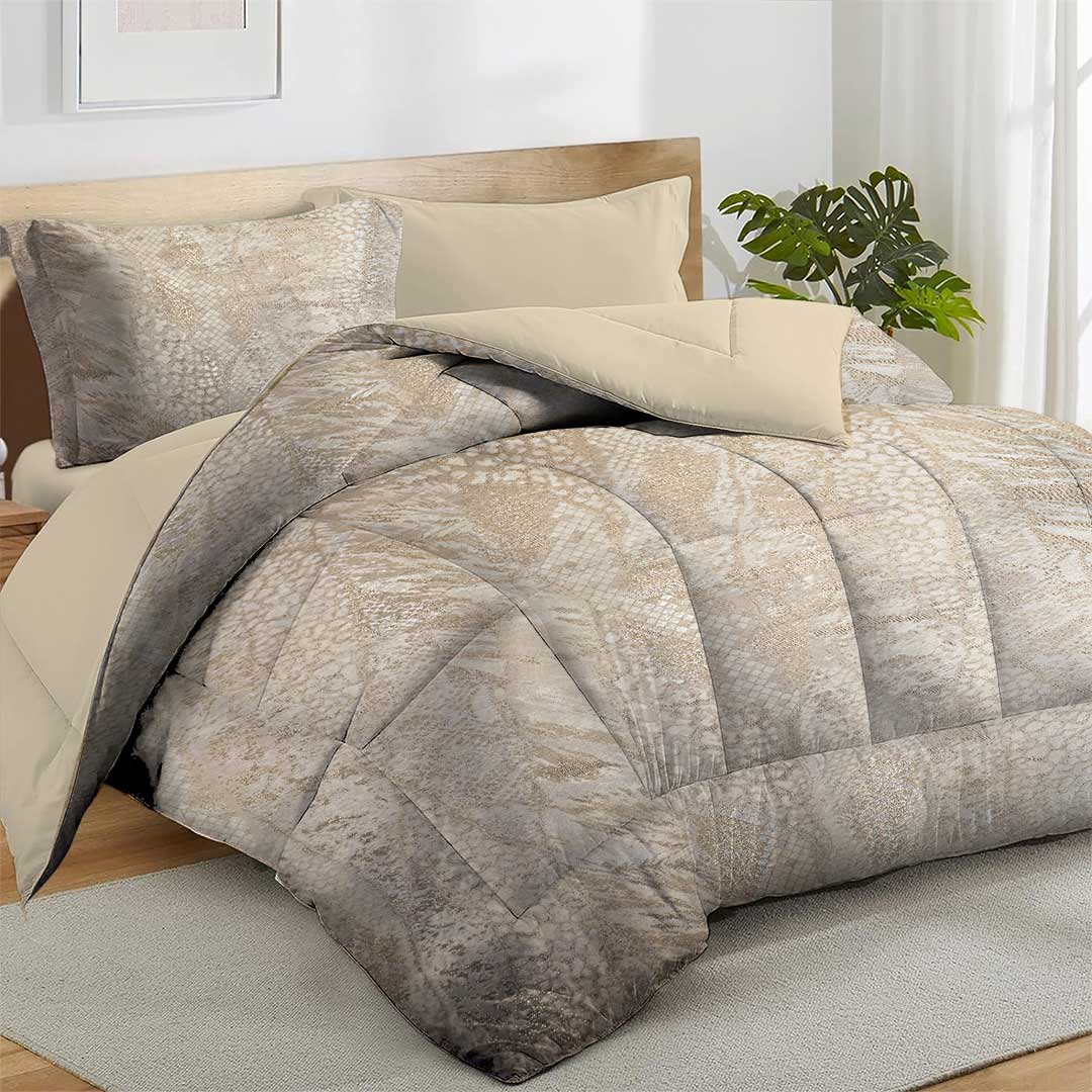 سرویس روتختی مخمل شانل طلاکوب پوست ماری مدل EO، شامل روبالشی، روکوسنی، ملحفه رو تشکی کشدوز فریسایز و لحاف الیافدار میباشد. الیاف استفادهشده از نوع سیلیکون سُر و نرم با وزن ۳۰۰ گرم بوده و از بهترین مواد اولیه تهیه شده است.